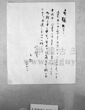 信中用日文写道:“老板几下:没想到半夜又喘起来。因此,十点钟的约会去不成了,很抱歉。拜托你给须藤先生挂个电话,请他速来看一下。”信上的字迹潦草,很难分辨,可以看出当时鲁迅先生身体非常虚弱。写完这封信的次日,鲁迅先生就与世长辞了。鲁迅逝世后,上万名上海民众自发为他举行公祭、送葬。在鲁迅的灵柩上覆盖着一面旗帜,上面写着“民族魂”3个字。