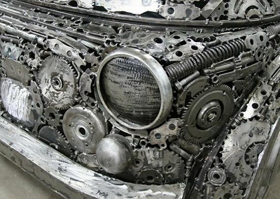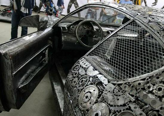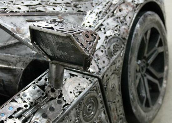 来源:thisiscolossal 作者:Christopher Jobson 翻译:张子威 文中所有图片均来自Leslaw Sagan/Auto Swait 原文原标题:50 Artists Raid a Polish Scrapyard to Build a Collection of Recycled Metal Cars 翻译原标题:50名艺术家花了5年,造了4辆金属汽车 波兰的普鲁什库夫(Pruszków)有一个金属模型展览馆,整个展馆装了几十个金属雕塑,这些雕塑都是由附近废弃场里搜刮的废铁改装而成。他们最新的展品是由50名艺术家花了5年时间,设计并制造出的四款金属汽车模型。汽车模型包括一辆梅赛德斯-奔驰300SL、一辆布加迪威龙、一台玛莎拉蒂GT和一台兰博基尼Aventador。这些金属汽车模型完全按照1:1的比例制成,同时它的车门可以开关,汽车内部也是按原型复制。展厅里的金属模型还包括变形金刚,以及其他出现在电影或电视中的经典流行文化角色。 如果你想要了解更多汽车模型的细节,可以访问Carscoops一探究竟。