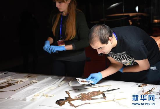 2月21日,工作人员在清点爪哇皮影。 “大英博物馆100件文物中的世界史”将于3月2日起在中国国家博物馆向公众开放,目前正开箱布展。展览将展出大英博物馆丰富藏品中的100件(套)文物。新华社记者 金良快 摄