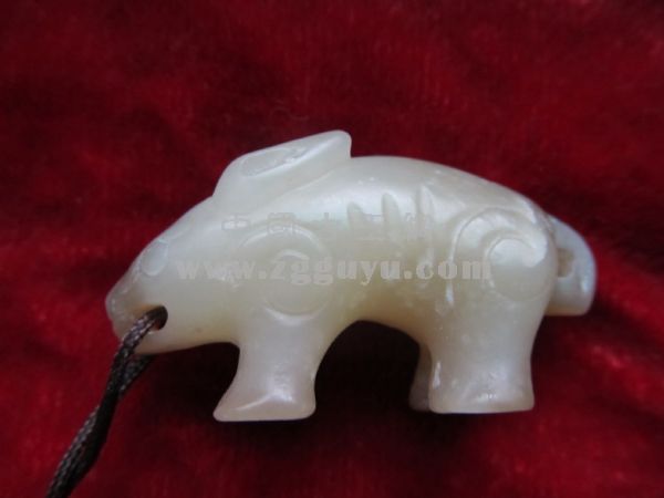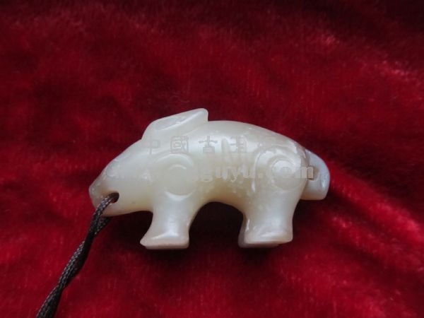 汉代和田玉。和后款是一坑。玉器型流畅刀法精拙,有沁色起包浆。